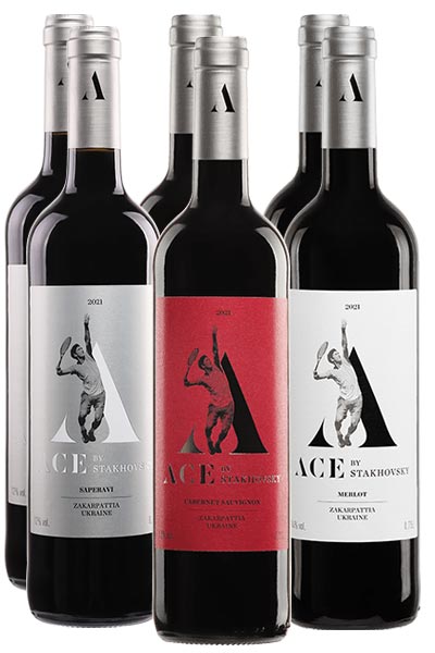 6 пляшок (2хCabernet Sauvignon 2021, 2хSaperavi Ace 2021, 2хMerlot 2021)